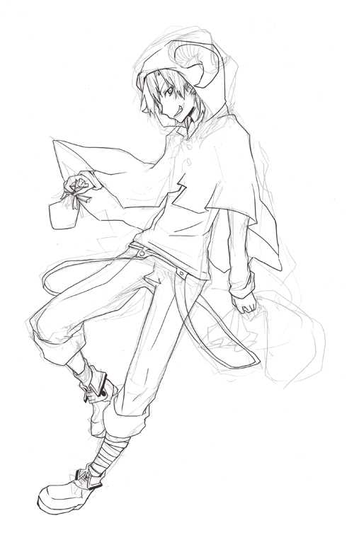 メイキングのようなものまとめ メモ帳 2012年10月07日 ついぴくでしこしこやってたメイキングをまとめてみるよ!つづきからだよ!画像いっぱいで縦長なので注意だよ!本日の使用アイテム・愛用のシャープペン(105円)・コピー用紙(A4)・AdobePhotoshopCS4・ペンタブ・スキャナやってると自分の作業工程が整理できるのでとても良かったです。みんなやればいいよ *①下絵コピー用紙にシャープペンでゴリゴリした下絵をスキャナで取り込み。この後下絵レイヤの不透明度下げ→その上に新規レイヤを作成し線画を描いていきます。この際、下絵レイヤの不透明度を下げると背景が市松模様になるので、一番下に白で塗りつぶしたレイヤを仕込みます。②線画手直ししつつガリゴリグレゴリ。薄く見えてるのが先ほどの下絵。下絵からの主な変更点として、角が変形し左の足先が追加されました。③下塗りパーツごとにレイヤ分けなんて器用なことをするはずもなく色塗りに使うのはレイヤ一枚です。線画の下に通常レイヤを作成して、ペンと消しゴムでべたべたするだけのささやかなおしごと③影1下塗りレイヤの上に新規レイヤを作成、モードは「乗算」。右クリメニューから「クリッピングマスク」を選択して、奥行きになる影を入れます。この時点でなんかそれっぽくなるのでもうこれでいいんじゃないかなって思ったりもします。④影22も1と同様のレイヤで。肌と髪以外はちょっと赤みがかったグレーでゾリゾリ影付けです。⑤仕上げ・「通常」レイヤ追加→ハイライト入れ用。アトレーは目のハイライトを入れませんが髪とか角とか服とか角とか。・「ソフトライト」レイヤ追加+不透明度下げ→フードの端など、一部に黄色を入れてマイルド化。で、これにて完成。日によって加工の程度や影の付け方は変わりますけどだいたいこんなんです。制作時間は下絵も含めると3、4時間くらいのはず今回の使用レイヤ8枚の皆さん PR